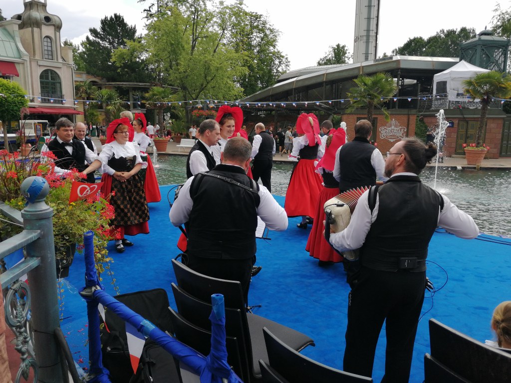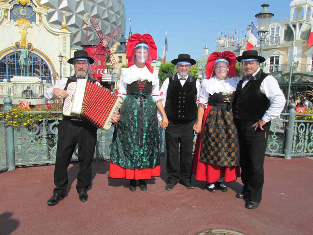 Le 13 août, Europa Park a organisé comme chaque année, la Journée Alsacienne. La covid 19 ne nous a pas permis de présenter des danses, mais deux couples accompagnés d’un musicien se sont promenés dans le quartier français en costume traditionnel (visière en plus). Le reste de la journée, les participants ont pu profiter des attractions du parc.